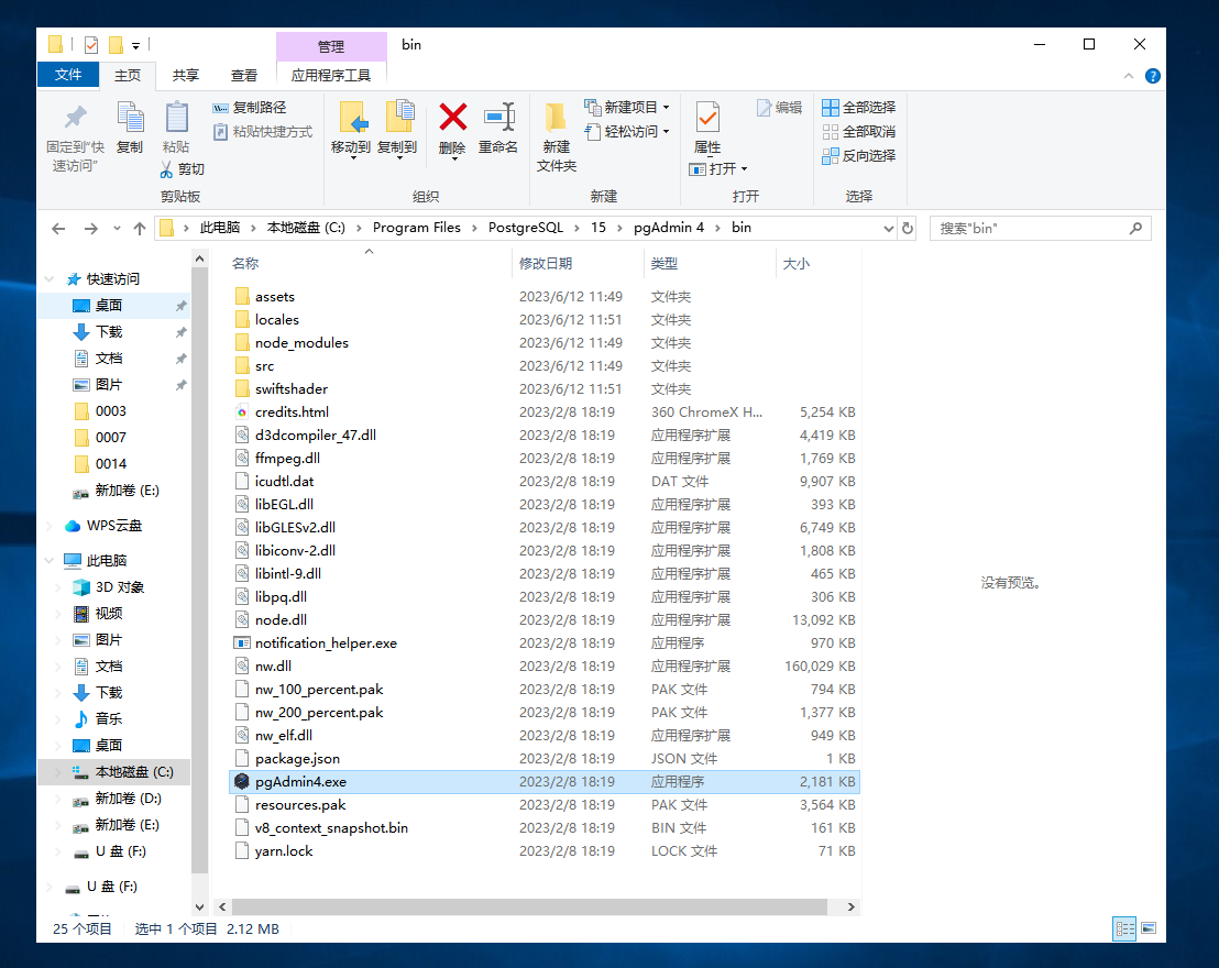 1.點(diǎn)擊以下路徑進(jìn)入:C:\Program Files\PostgreSQL\15\pgAdmin 4\bin,并點(diǎn)擊pgAdmin4.exe進(jìn)入軟件(軟件啟動可能比較慢)