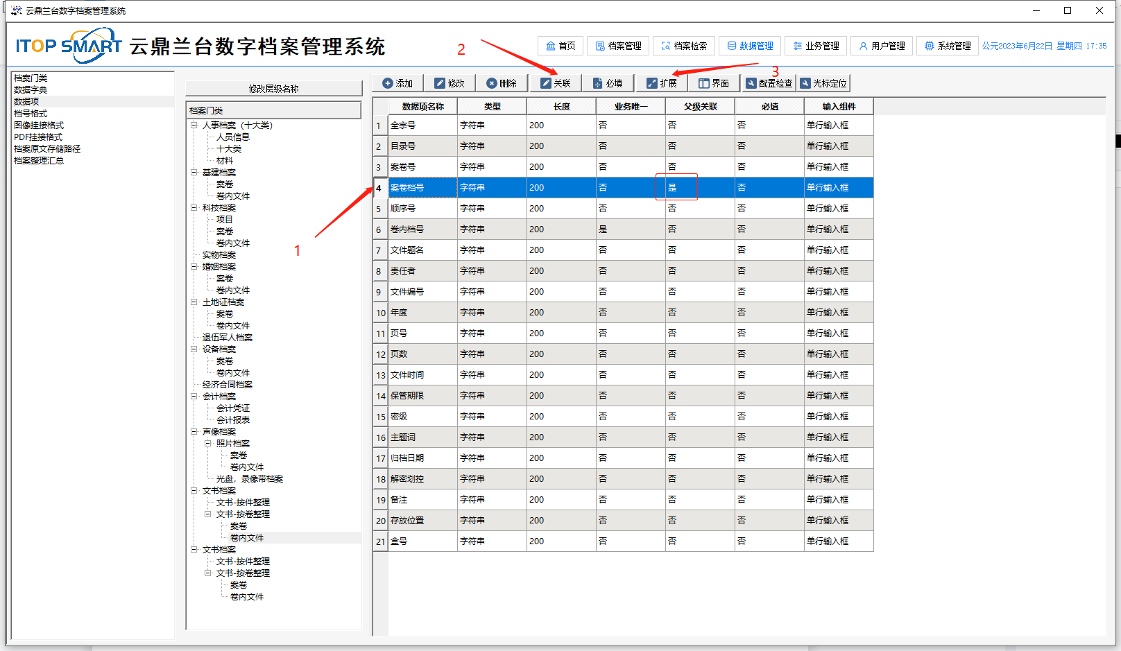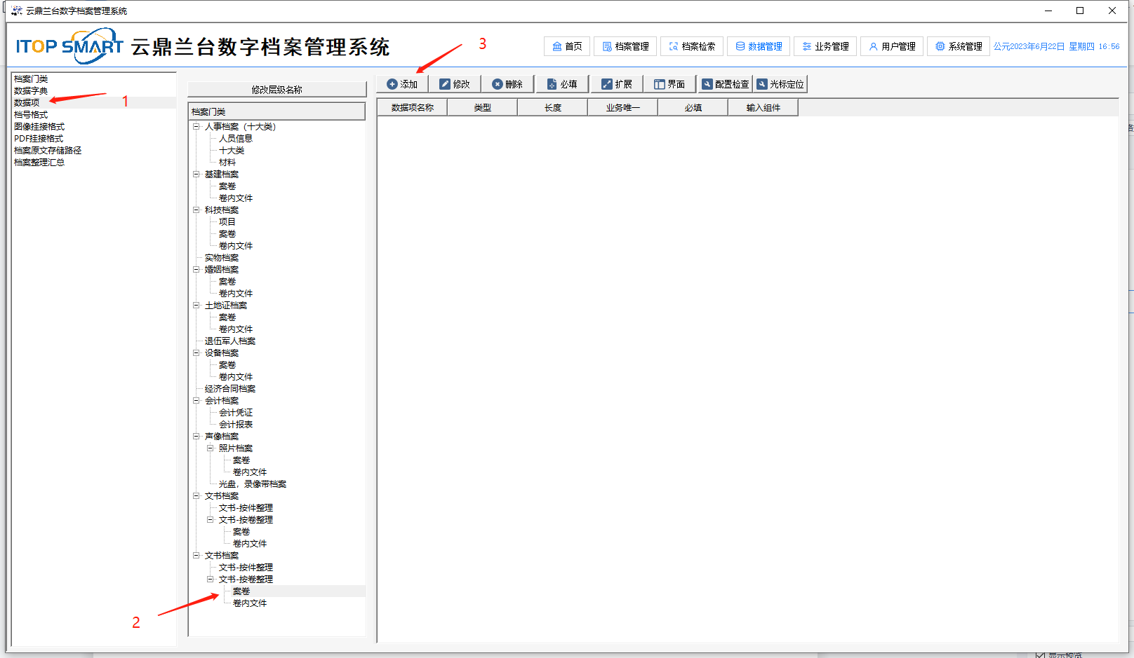 創(chuàng)建檔案門類并配置數(shù)據(jù)項