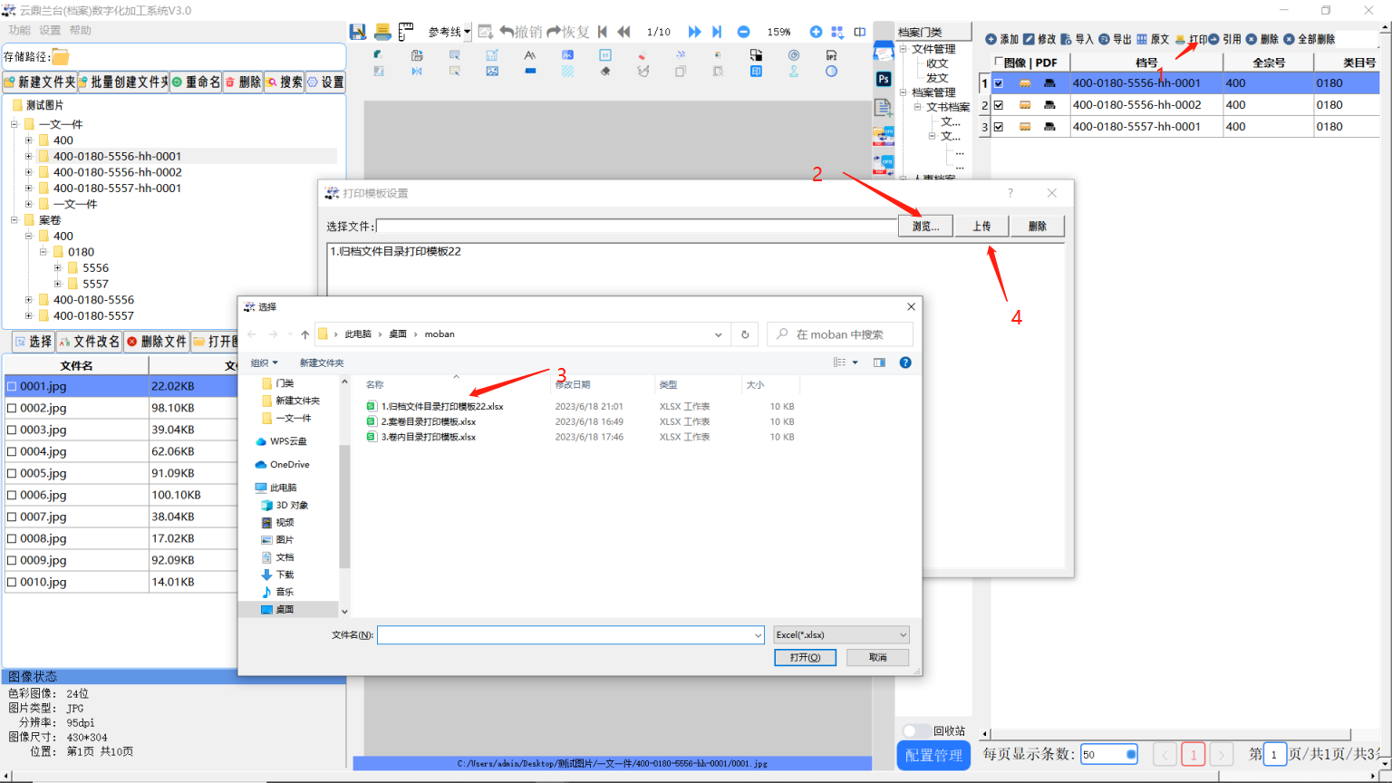 (8)若要打印目錄,需提前設(shè)置好打印模板,點擊打印,選擇設(shè)置打印模板,選擇瀏覽并上傳,再次點擊打印。