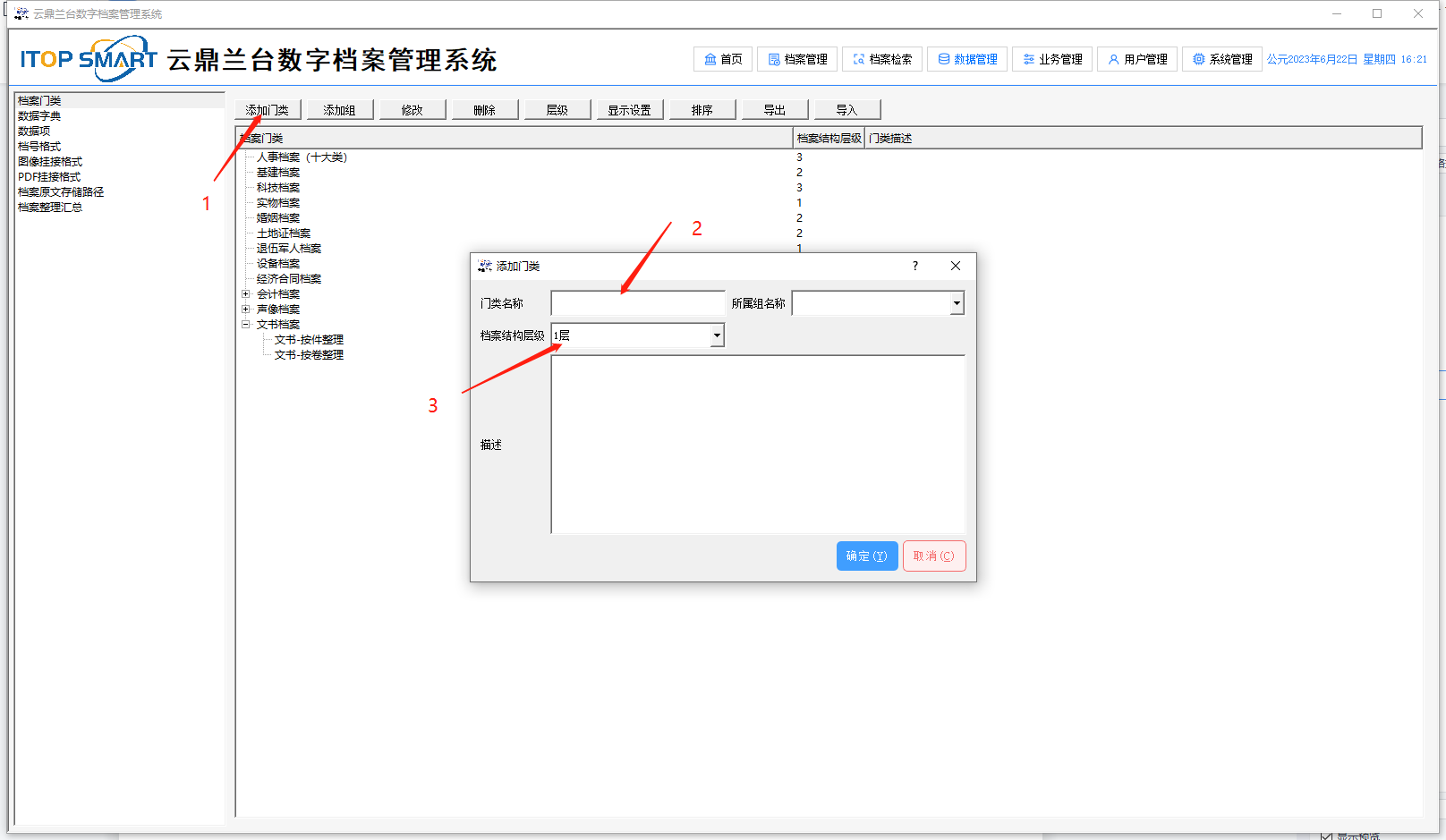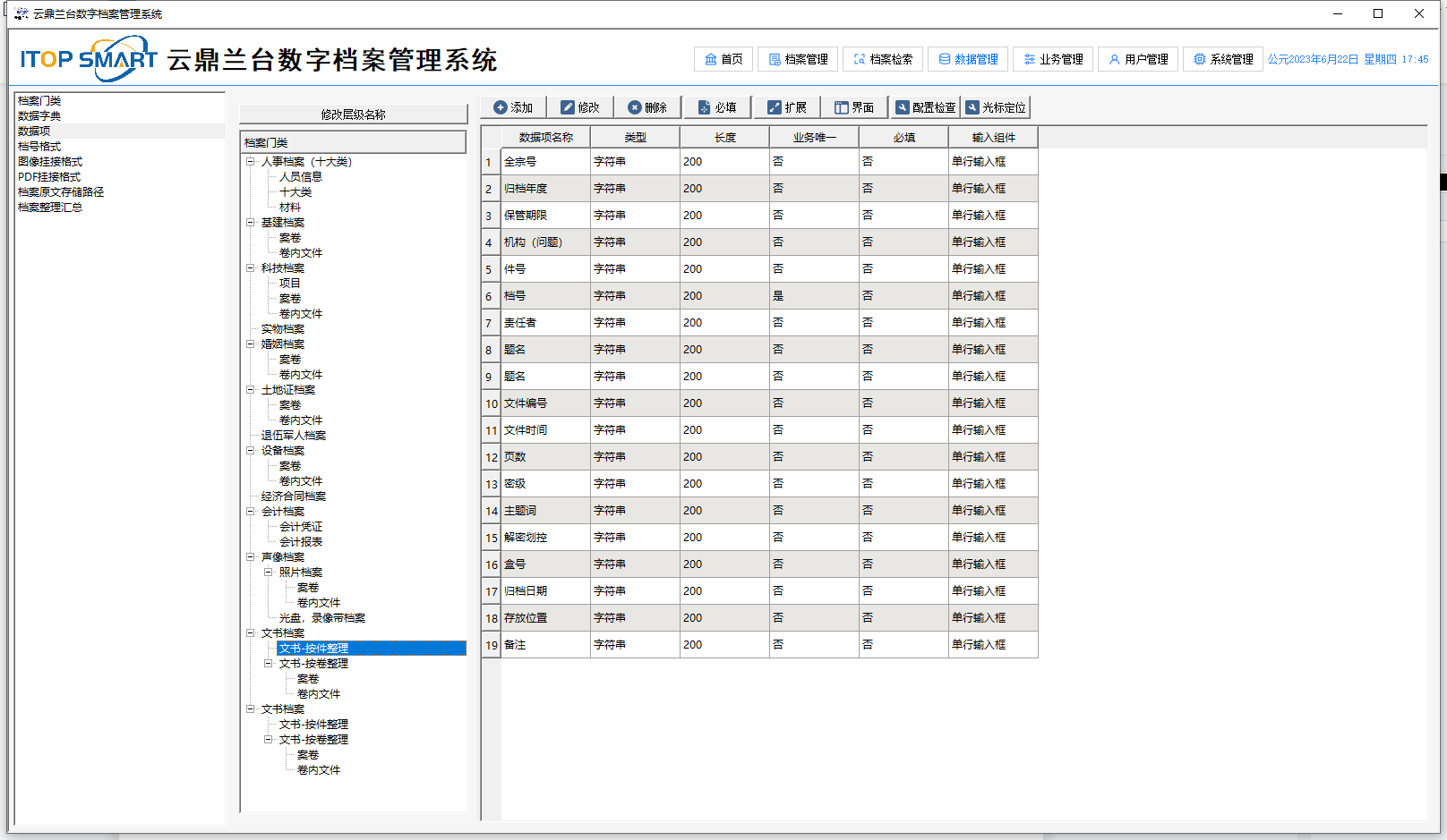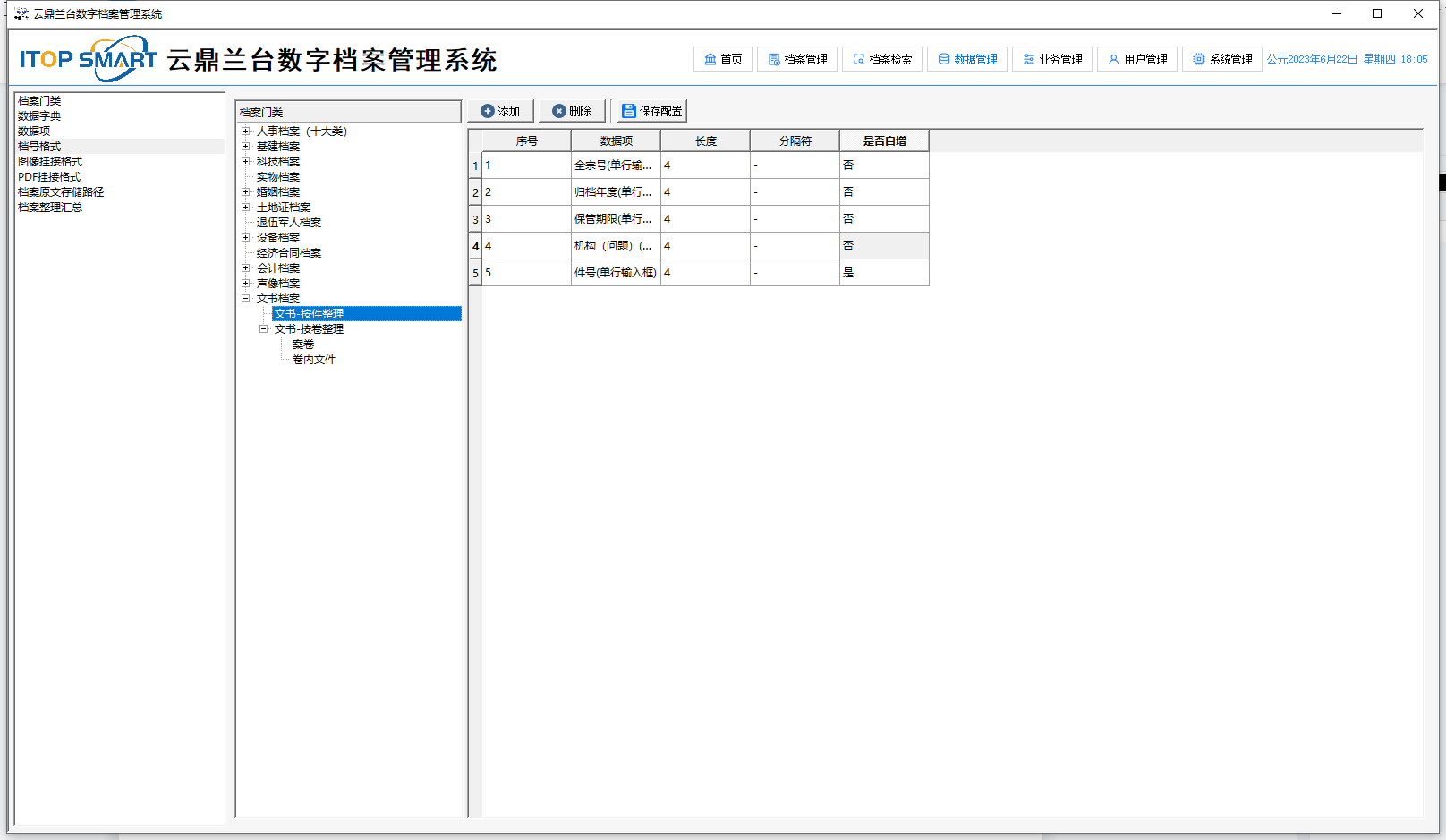 四,創(chuàng)建檔案門類并配置數(shù)據(jù)項