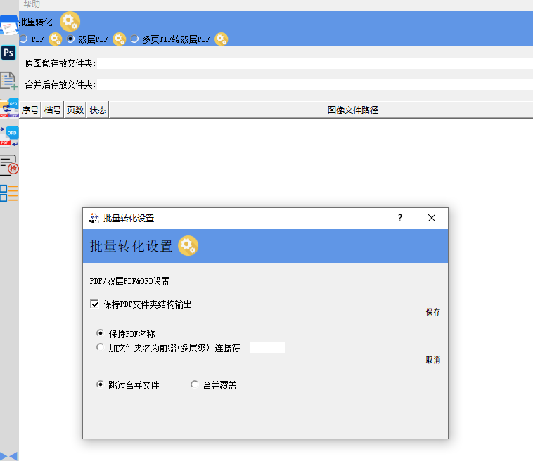 批量轉(zhuǎn)化主要用于單層pdf轉(zhuǎn)單層(可在轉(zhuǎn)化過程中改變pdf命名規(guī)則),或轉(zhuǎn)雙層。