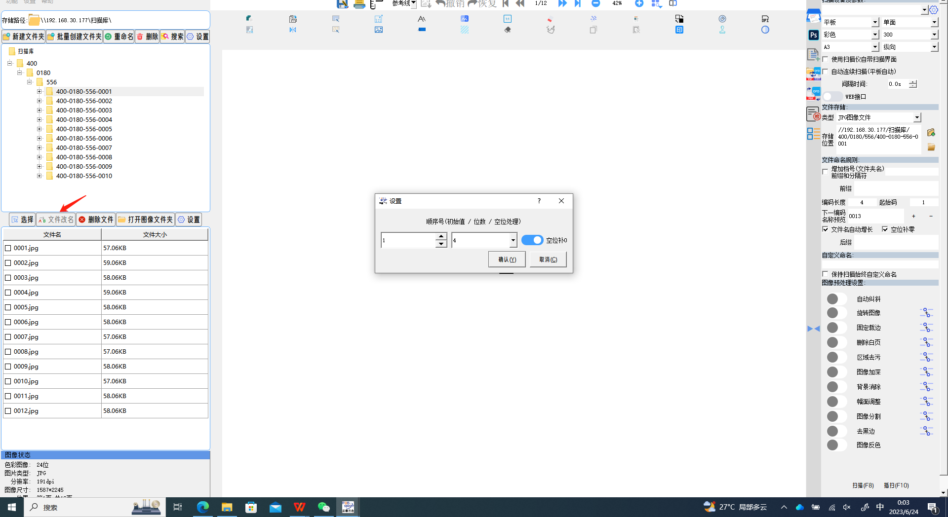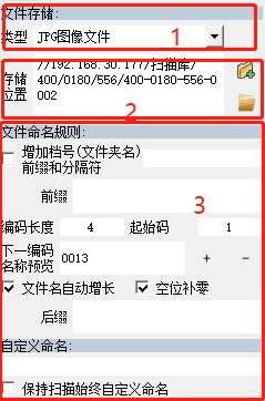 (2)設(shè)置掃描圖像類型,設(shè)置存儲路徑,設(shè)置掃描圖像的命名規(guī)則,
