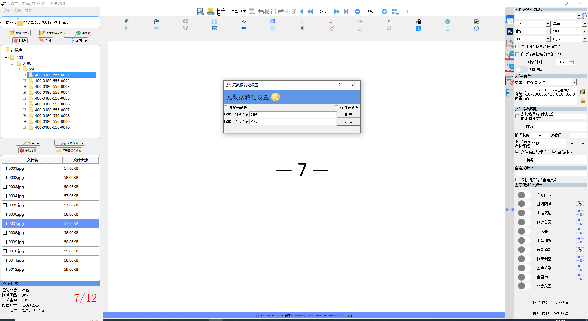 元數(shù)據(jù)管理設(shè)置:勾選元數(shù)據(jù),并添加上數(shù)字化對象描述、數(shù)字化授權(quán)描述后掃描件中會記錄元數(shù)據(jù)。