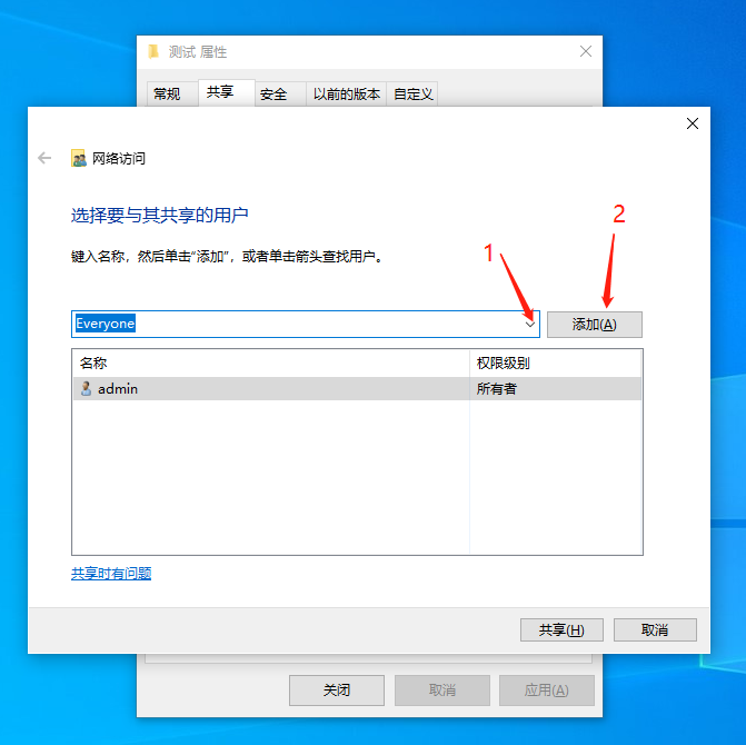 (2),點擊彈出界面的下拉框,選擇everyone,點擊添加