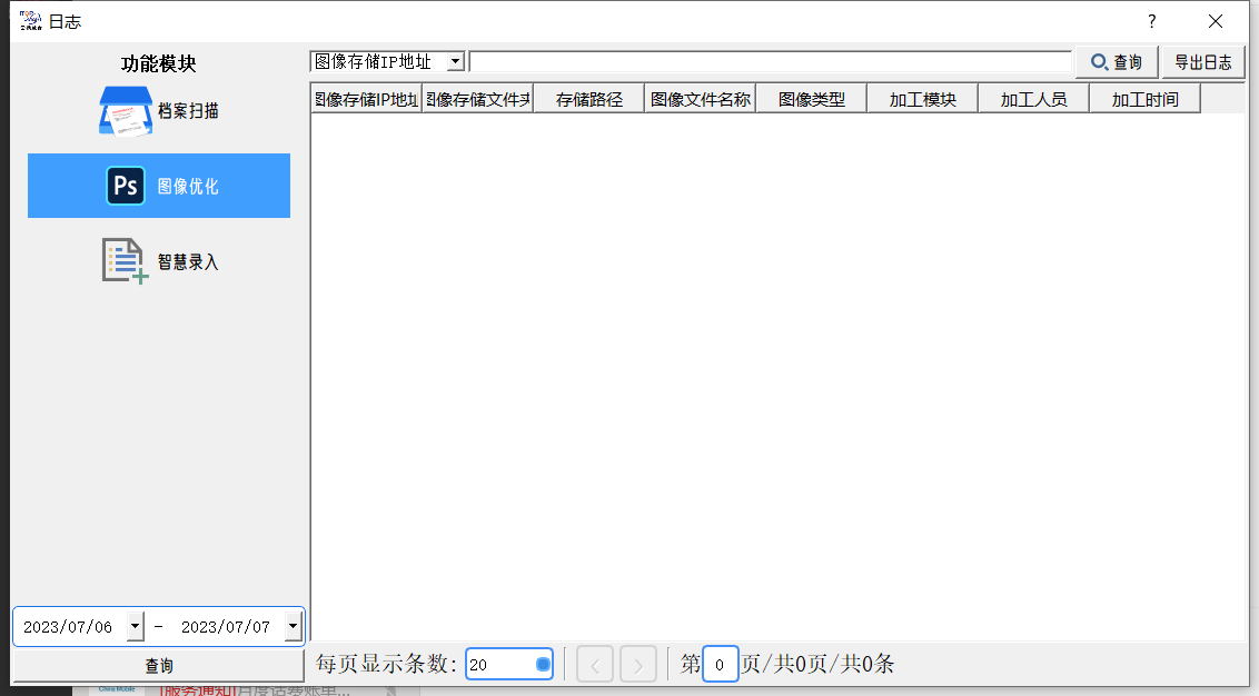 (3)工作日志管理:點擊登陸界面的齒輪鍵,點擊彈出界面的工作日志管理,點擊登錄管理員賬號。這里可以對各個功能模塊的加工情況進(jìn)行輔助管理,查詢數(shù)據(jù)加工記錄。