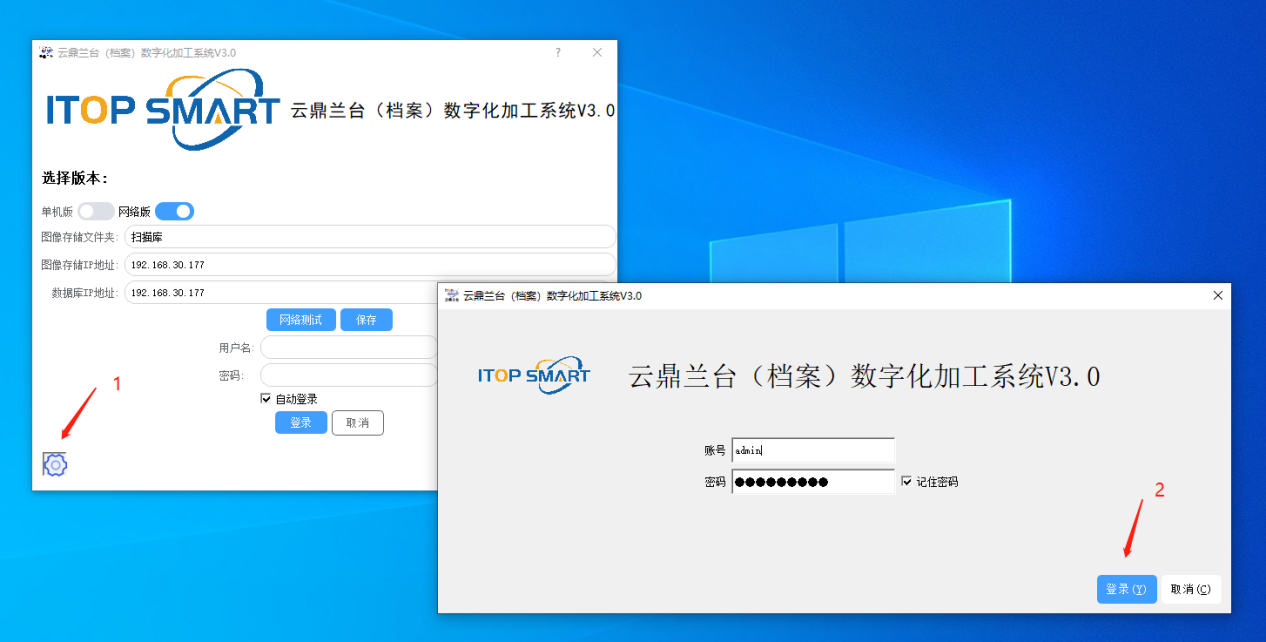 (2)點擊登陸界面左下角的設(shè)置按鍵,在彈出界面選擇點擊進(jìn)入管理員賬號登錄,彈出管理員賬戶登陸界面,點擊登錄(默認(rèn)賬號:admin,默認(rèn)密碼:itopsmart)。